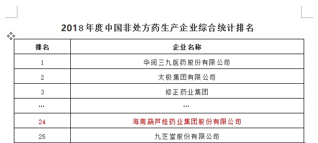 2018年11月15日,中国非处方药物协会发布《2018年度中国非处方药企业及产品榜》,龙8头号玩家药业集团由2017年度中国非处方药生产企业综合排名第32名跃升至第24名。