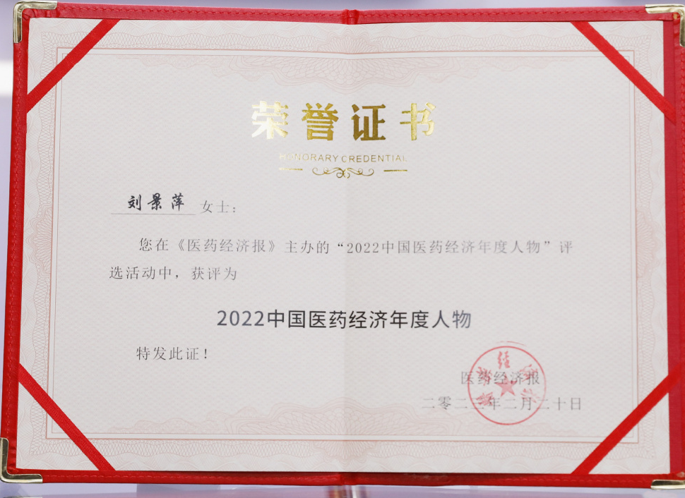 龙8头号玩家药业集团董事长刘景萍当选“2022中国医药经济年度人物”